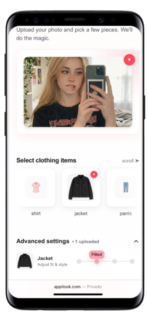 Upload your photo and try on unlimited combinations of clothing items. Mix and match tops, bottoms, dresses, jackets, and accessories to find your perfect outfit combination.